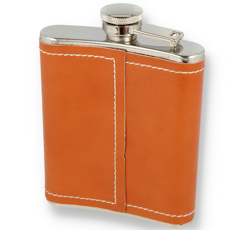 Peterson Leather Bound Hip Flask These elegant leather finished hip flasks make the perfect gift for any gentleman. With a Stainless Steel body and genuine leather wrap, they are perfect for outdoor (and indoor) pursuits.