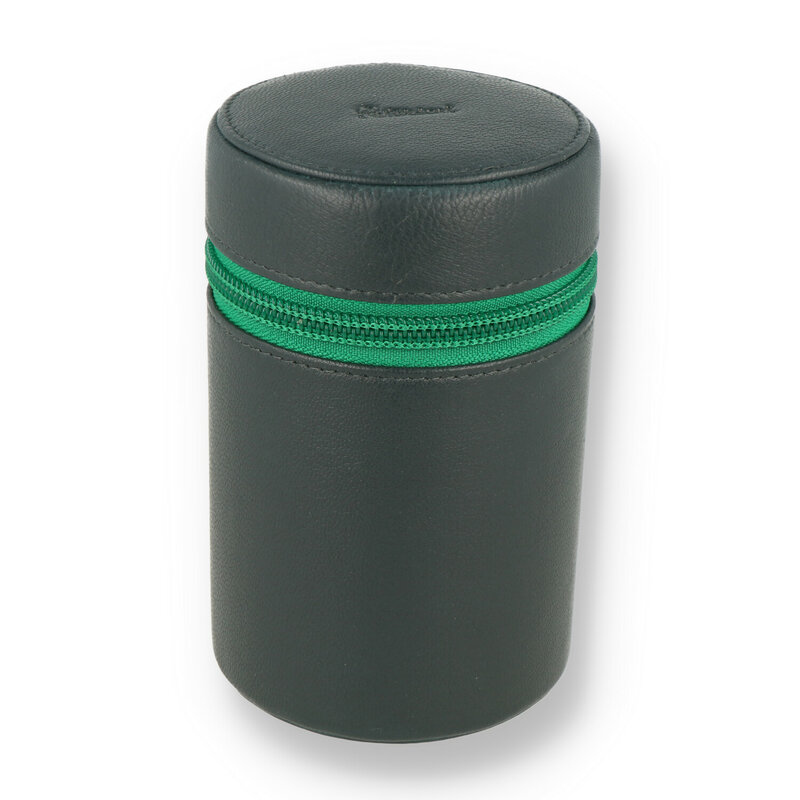 Avoca Travel Storage Jar Unlike traditional glass or ceramic storage jars, The Peterson Avoca leather storage jars are extremely durable. Each jar is made from a hardened elastic polymer to ensure an airtight seal which is then wrapped in a subtly green leather exterior with a green zipped trim. It is stamped with the Peterson logo on the lid and the instantly recognisable Peterson "P" on the zipper. Perfect for travelling to ensure your favourite tobacco stays fresh whatever the weather.