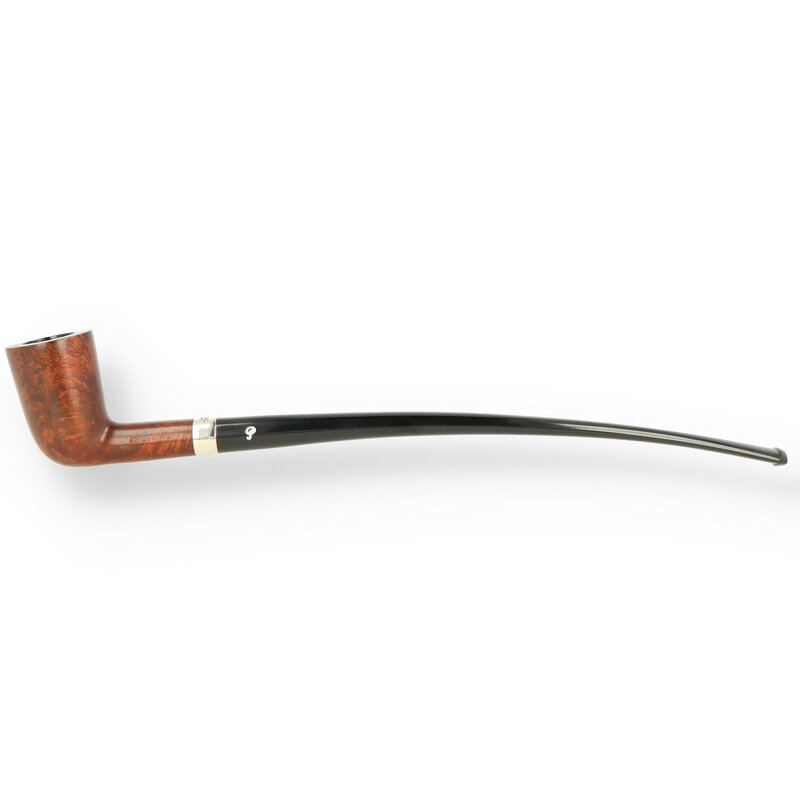 The Peterson Churchwarden Smooth Dublin is a standard, highly polished, Dublin shaped bowl with an extra long Vulcanite stem. The Dublin has a fairly small bowl size and bore, which keeps the weight down and can be hung without support.