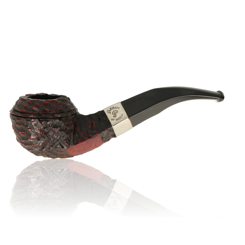 Peterson Donegal Briar Pipe Range: The Peterson Donegal is Peterson’s entry level pipe and is probably their most popular range of pipes. The price is more affordable as the bowl is carved rather than sandblast or smooth so the grain does not have to be aesthetically pleasing. The quality of the Briar is still very good as with all Peterson pipes. The bowl is coloured with a rich Cherry coloured stain with an overlay or Dark brown. When the pipe is polished the black cherry stain is revealed on the raised areas for a stunning contract. This pipe is finished with a flush Nickel band stamped with the Peterson logo. The Peterson Donegal pipes are part of the classic range which means they do not have a specific filter and they are not a system pipe but usually have a small reservoir to collect impurities and moisture from the smoke.