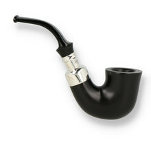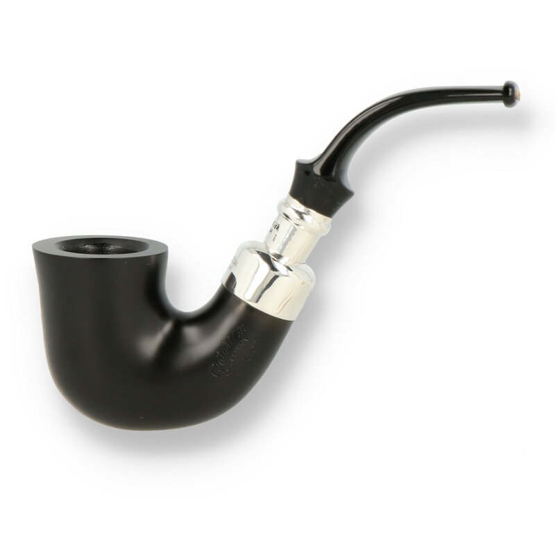 Peterson Ebony 05 Spigot Peterson Spigots are notoriously rare and usually take pride of place in any collection. The Spigot evolved on the front lines as soldiers repaired their pipes with spent cartridges. Peterson evolved this into hallmarked sterling silver band and tapered fitting on the stem of a high grade pipe. The Briar on this pipe has been specially chosen for it's exceptional grain pattern which runs vertically from the heel up the bowl which is then highlighted with the warm walnut finish. The Spigot 05 is a full bent briar with a fairly large, Dublin shaped bowl. The 05 fits the hand beautifully as the lipped top provides the perfect resting place for the index finger and thumb. (Rather like a Nonic Pint Glass) It has a fairly large bore and a good thick wall, which allows the smoker to get a good fill of tobacco, without the worry of overheating.