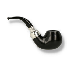Peterson Ebony XL02 Spigot Peterson Spigots are notoriously rare and usually take pride of place in any collection. The Spigot evolved on the front lines as soldiers repaired their pipes with spent cartridges. Peterson evolved this into hallmarked sterling silver band and tapered fitting on the stem of a high grade pipe. The pipe features a stunning ebony finish, which gives a sleek and timeless appearance, the dark hue and smooth texture adds an air of refinement, appealing to those with discerning taste. The stem of the pipe is made from durable black acrylic, which offers both visual appeal and longevity. It is carefully crafted to provide a comfortable and balanced feel while smoking, ensuring that the experience is both enjoyable and relaxing. The Peterson Ebony Spigot Pipe is not only a functional smoking instrument but also a work of art that will delight pipe enthusiasts and collectors. With its luxurious ebony finish, intricate spigot mount, and impeccable craftsmanship, this pipe is sure to become a cherished possession for those who appreciate the finer things in life. The The XL02 is a large full bent briar with a generously sized, apple shaped bowl. The XL02 has a thick wall, with a deep bowl and large bore. The Apple shape is one of the most popular bowl shapes as the shape is more comfortable in the hand. The deep bowl makes for a versatile pipe as the fill can be varied for a short satisfying smoke or a long intense fireside session.