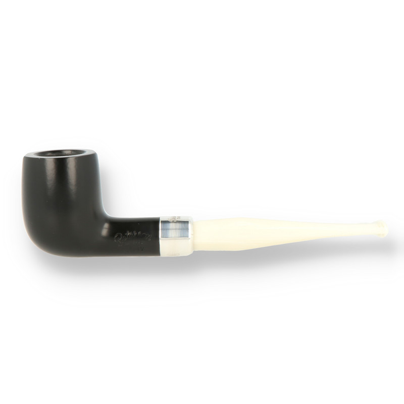 Peterson Evening Series The Peterson Evening Series is a new addition to the Army Series. All the pipes have a classic satin ebony finish that is beautifully contrasted with a marbled white and grey cumberland style acrylic stem. Each fishtail stem has been shortened to create a more compact pipe to the usual designs. The traditional Sterling Silver army mounted band and aluminium signature Peterson 'P' logo provide these pipes with a classic look.