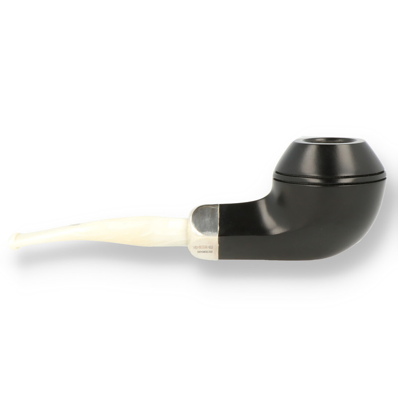 Peterson Evening Series The Peterson Evening Series is a new addition to the Army Series. All the pipes have a classic satin ebony finish that is beautifully contrasted with a marbled white and grey cumberland style acrylic stem. Each fishtail stem has been shortened to create a more compact pipe to the usual designs. The traditional Sterling Silver army mounted band and aluminium signature Peterson 'P' logo provide these pipes with a classic look.