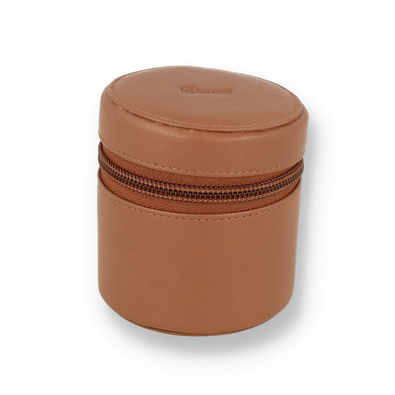 Grafton Travel Storage Jar Unlike traditional glass or ceramic storage jars, The Peterson Avoca leather storage jars are extremely durable. Each jar is made from a hardened elastic polymer to ensure an airtight seal which is then wrapped in a brown leather exterior with a brown zipped trim. It is stamped with the Peterson logo on the lid and the instantly recognisable Peterson "P" on the zipper. Perfect for travelling to ensure your favourite tobacco stays fresh whatever the weather.