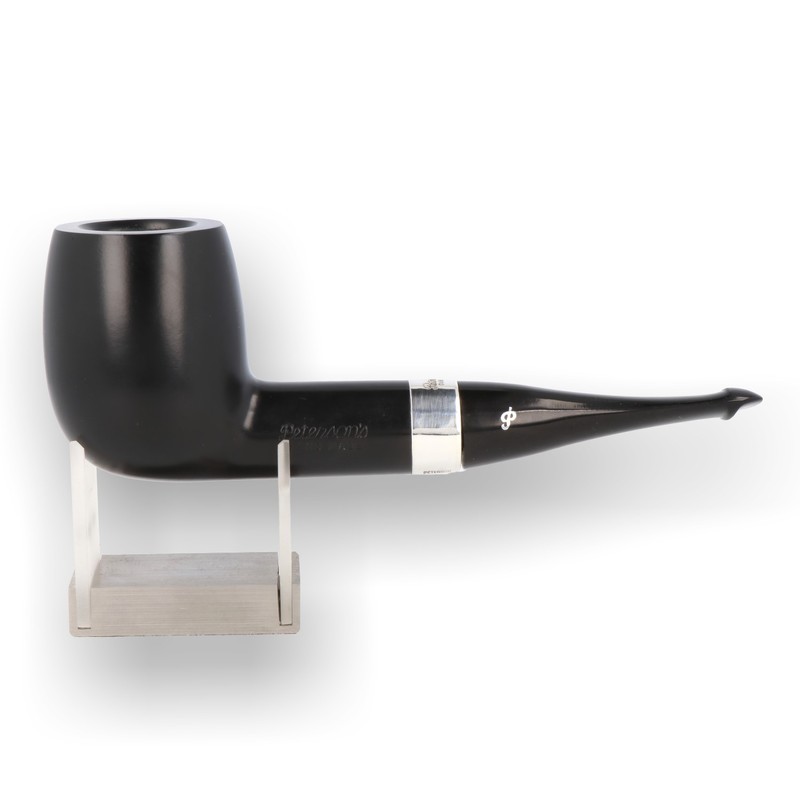 Peterson House Pipes Based on the XXL systems from the 1900 peterson catalogue, the Peterson House pipe is a huge pipe of colossal dimensions, sometimes referred to as a "system on steroids" the name comes from the fact that they are just too large to carry around and too heavy to hold in one's mouth, that you'll want to smoke them at home, settled into a comfortable chair for a very long session with a good book. Varying in finish from Smooth, Sandblast and Rustic finishes and straight billiard and bent shapes. All with Sterling silver bands. Finishes include Terracotta, Natural, Ebony and Oak.