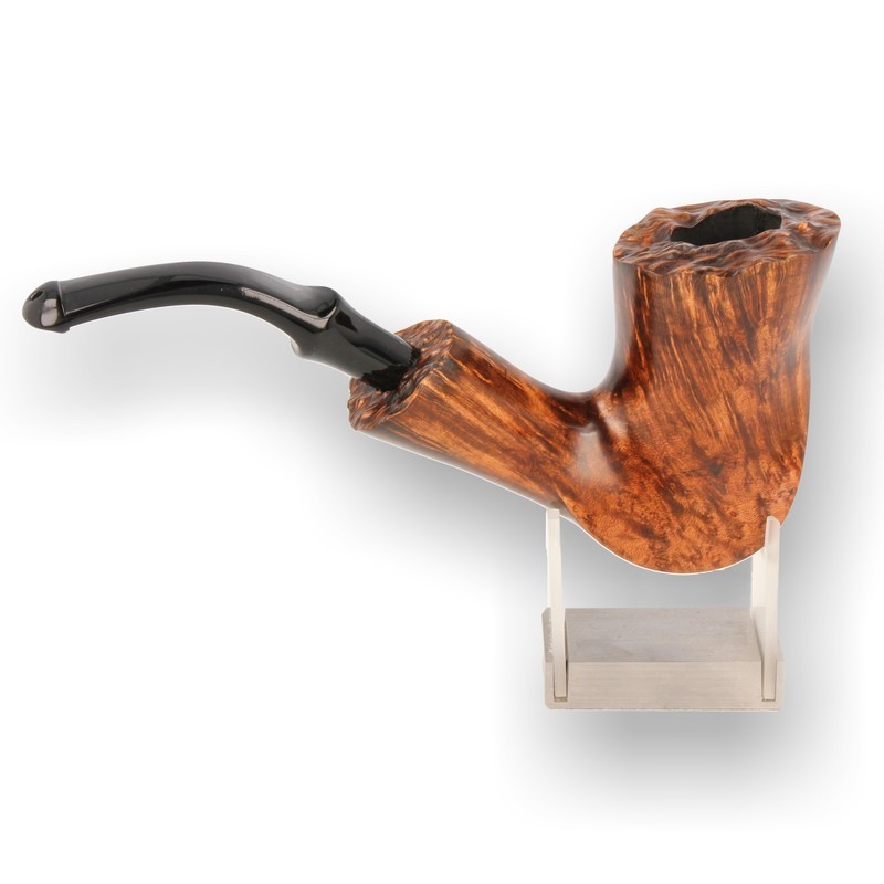 Peterson Plato Freehands: Not a shape code in sight! Peterson's core range of pipes are easily identifiable by their codes and you can usually get any finish and style in the shape and size you wish. Each Plato is totally unique and you will never see one alike. Only a handful of carvers in the world are good enough to be given the reigns to go freehand by Peterson as it takes considerable skill and vision. The Briar blocks are cut from the outer layer of the burl (exterior) of the Briar roo, known as Plateaux. This is the finest area of the Briar root and produces the most striking grain pattern and highest quality Briar. Many freehands will leave the Burl on the rim of the bowl which adds unrivaled character and is testament to the fact the pipe has been carved from the premium section of the root. Most freehands are larger pipes with thick walls, this combined with the natural properties of the Briar taken from this are of the root make them very heat resilient pipes.