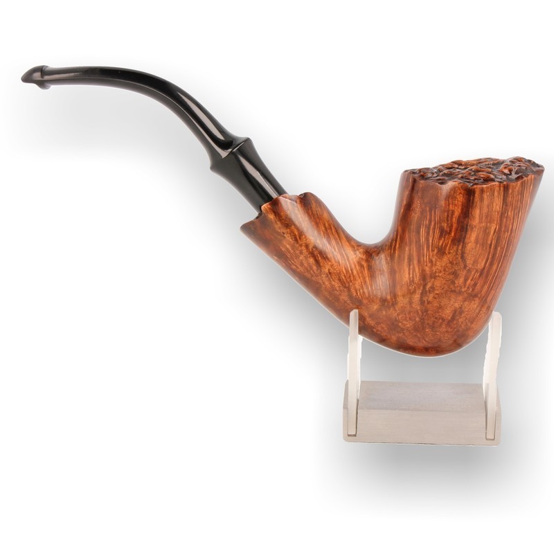 Peterson Plato Freehands: Not a shape code in sight! Peterson's core range of pipes are easily identifiable by their codes and you can usually get any finish and style in the shape and size you wish. Each Plato is totally unique and you will never see one alike. Only a handful of carvers in the world are good enough to be given the reigns to go freehand by Peterson as it takes considerable skill and vision. The Briar blocks are cut from the outer layer of the burl (exterior) of the Briar roo, known as Plateaux. This is the finest area of the Briar root and produces the most striking grain pattern and highest quality Briar. Many freehands will leave the Burl on the rim of the bowl which adds unrivaled character and is testament to the fact the pipe has been carved from the premium section of the root. Most freehands are larger pipes with thick walls, this combined with the natural properties of the Briar taken from this are of the root make them very heat resilient pipes.