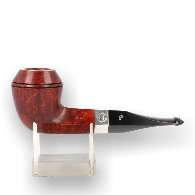 Peterson Sherlock Holmes Series Smooth Quite simply the most popular pipe series that Peterson have ever produced. The Peterson Sherlock Holmes series was introduced in 1987 as a 7 day smokers set in honour of Sir Arthur Conan Doyle’s famous detective series and captured the hearts of Peterson fanatics worldwide. You will be very hard pressed to find a full 7 day set as the pipes are so hard to source due to their popularity. Peterson simply can’t get enough high grade briar blocks to produce enough of these pipes to satisfy the high demand. They are Extra Large high grade pipes named after famous elements in the Sherlock Holmes novel. They are finished in a smooth terracotta stain which really brings the stunning grain to life and have been finished with a sterling silver band and Aluminium embedded P on the mouthpiece which you only see on their high grade pipes.