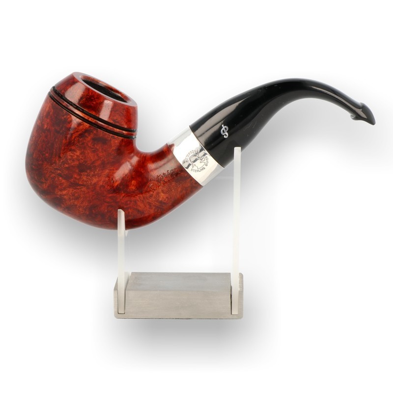 Peterson Sherlock Holmes Series Smooth Quite simply the most popular pipe series that Peterson have ever produced. The Peterson Sherlock Holmes series was introduced in 1987 as a 7 day smokers set in honour of Sir Arthur Conan Doyle’s famous detective series and captured the hearts of Peterson fanatics worldwide. You will be very hard pressed to find a full 7 day set as the pipes are so hard to source due to their popularity. Peterson simply can’t get enough high grade briar blocks to produce enough of these pipes to satisfy the high demand. They are Extra Large high grade pipes named after famous elements in the Sherlock Holmes novel. They are finished in a smooth terracotta stain which really brings the stunning grain to life and have been finished with a sterling silver band and Aluminium embedded P on the mouthpiece which you only see on their high grade pipes.