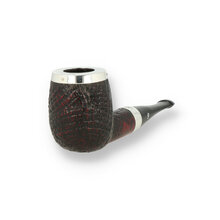 Peterson House Pipes Based on the XXL systems from the 1900 Peterson catalogue, the Peterson House pipe is a huge pipe of colossal dimensions, sometimes referred to as a “system on steroids” the name comes from the fact that they are just too large to carry around and too heavy to hold in one’s mouth, that you’ll want to smoke them at home, settled into a comfortable chair for a very long session with a good book. This model is finished in a sandblasted dark red stain with Sterling Silver Cap and Band.