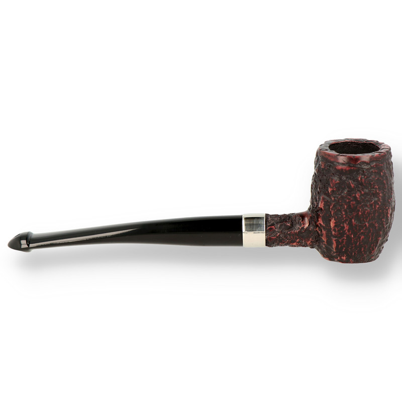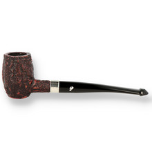 Peterson Barrel Rustic Briar Pipe One of the great attractions to pipe-smoking, however unconscious it may sometimes be, lies in the sense of finally getting to sit down and “take a load off” after a hard day’s work. There’s something calming about a pipe that can do the same – just sit down and take care of itself, isn’t there? A light and elegant rusticated extended poker shape with a flat bottom, black acrylic p-lip stem set with a nickel band.