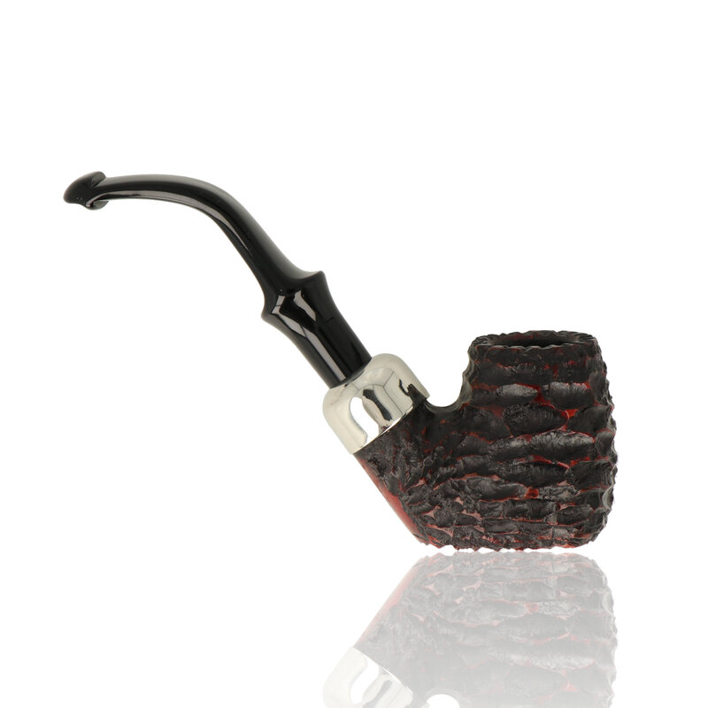 Peterson System Rustic The Rustic System is the same pipe as the system smooth but with a carved rustic finish. The Briar is coloured with a deep red stain before finishing in a deep brown almost black overlay. The pipe is then sanded back to reveal the lighter red stain on the raised areas to give a stunning contrast. It is believed that a rough finish on a pipe helps keep the pipe cooler as there is more surface area in contact with the cool air around it. This in turn helps keep the smoke cooler in the pipe. There is also more natural grip when holding the bowl.