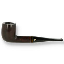 Peterson Tyrone Peterson are well know for taking inspiration from their Irish home. From places and landscapes, colours, weather and history. The Tyrone range, first introduced in the 1990's, takes its name from the traditional county of Tyrone which consists of the flat peatlands to the East rising gradually to the beautiful mountainous west region. The Tyrone have been finished in a rich dark smoky chocolate stain which makes for a beautifully refined looking pipe which is topped off with a black acrylic mouthpiece with a gold P stamp and double brass ring.