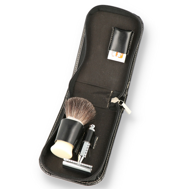 This high quality travel shaving set contains everything you need to keep that stubble at bay. A stunning pure badger, luxury shaving brush made from the finest badger hair for more moisture rich, thick, aerated lather with that luxurious feeling that just isn’t available from a can of Foam or gel! This reduces razor skipping and dragging over the skin for a smoother, less irritable shave.