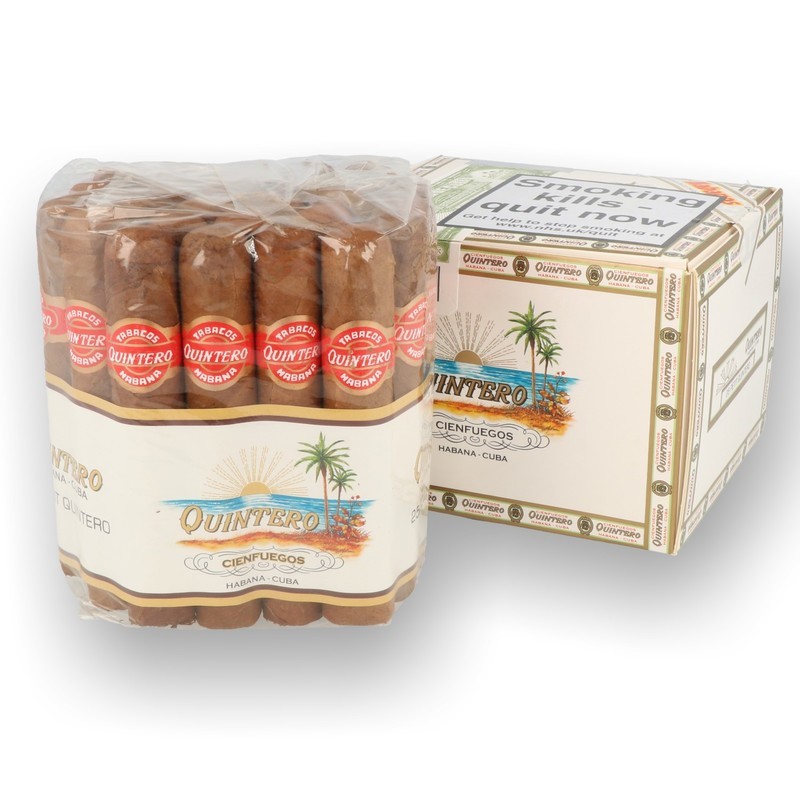 Quintero Cuban Cigars: Quintero is a fairly new addition to the UK Cuban Cigar Market but their roots can be traced back to 1924. The brand had concentrated on being a budget friendly machine made offering for passionate Cuban cigar fans who cannot justify the price tag of a premium hand rolled cigar. However in 2002 Habanos SA who control the Cuban Cigar production decided that they wanted to move all Cuban Cigars away from machine made as it was felt that this distracted from the reputation of Cuban Cigars. It was therefore decided to revamp this iconic brand by altering the manufacturing process to a hand rolled Cigar but using a short filler over long filler which has kept the flavour, price and style of the brand whilst improving the smoking experience. They are a perfect introduction to Cuban Cigars providing a mild to medium bodied smoke with a sweeter aftertaste.