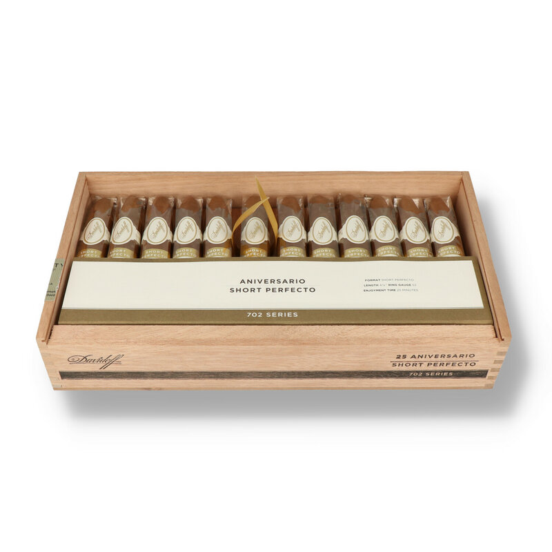Davidoff 702 Aniversario Short Perfecto: The Davidoff 702 Aniversario Short Perfecto Cigar is a super premium cigar that is expertly crafted with the finest materials and techniques. This exceptional cigar features a beautiful, reddish-brown wrapper made from 702 seed tobacco which is grown exclusively for Davidoff. The wrapper is perfectly complemented by the Dominican binder and filler leaves, which deliver a medium-bodied smoking experience with notes of black pepper, coffee, and nutmeg. The short perfecto shape of the cigar creates a unique smoking experience, allowing for a smooth draw and even burn. This cigar is ideal for both seasoned cigar aficionados and newcomers to the world of high-quality cigars. With its superior construction, outstanding flavor profile, and sophisticated packaging, the Davidoff 702 Aniversario Short Perfecto Cigar makes an excellent choice for any special occasion or when you want to treat yourself to a luxurious moment of relaxation.