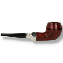 Peterson Walnut 150 Spigot Peterson Spigots are notoriously rare and usually take pride of place in any collection. The Spigot evolved on the front lines as soldiers repaired their pipes with spent cartridges. Peterson evolved this into hallmarked sterling silver band and tapered fitting on the stem of a high grade pipe. The Briar on this pipe has been specially chosen for it's exceptional grain pattern which runs vertically from the heel up the bowl which is then highlighted with the warm walnut finish. The Spigot 150 is a very distinctive classic Bulldog with a diamond shaped shank and the classic double groove round the bowl. A design classic, which is also popular due to being comfortable in the hand. The double groove aids cooling in the same way as a car radiator, which helps keep the bowl cool and in turn the smoke cooler and smoother. A great all rounder with stunning aesthetics. As with all the spigots there is a hall marked sterling silver military mount. This is a tapered fitting meaning the fit will never wear loose and I guess we can say it again, it just looks fantastic!