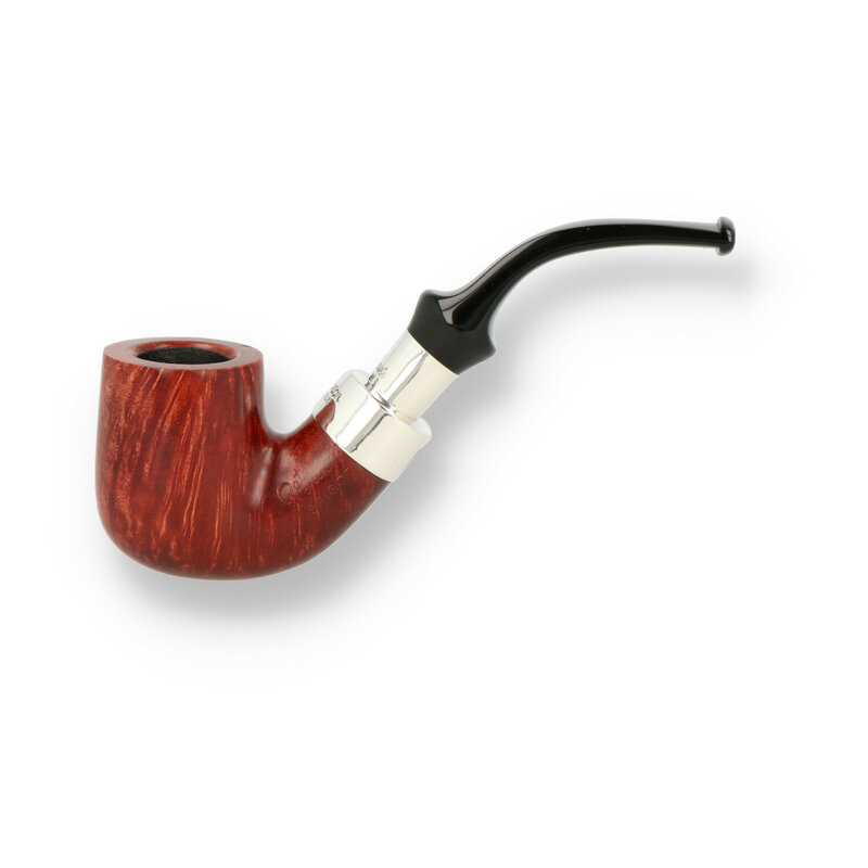 Peterson Walnut 338 Spigot Peterson Spigots are notoriously rare and usually take pride of place in any collection. The Spigot evolved on the front lines as soldiers repaired their pipes with spent cartridges. Peterson evolved this into hallmarked sterling silver band and tapered fitting on the stem of a high grade pipe. The Briar on this pipe has been specially chosen for it's exceptional grain pattern which runs vertically from the heel up the bowl which is then highlighted with the warm walnut finish. The Spigot 338 is a smaller, lightweight, full bent briar with a straight billiard bowl. It has slightly thinner walls to keep the weight down but not too thin that this pipe will overheat. It has a good deep bore for longer smokes but the bore isn't too big meaning it is also suitable for shorter smokes without wasting Tobacco. A great all rounder with stunning aesthetics. As with all the spigots there is a hall marked sterling silver military mount. This is a tapered fitting meaning the fit will never wear loose and I guess we can say it again, it just looks fantastic!