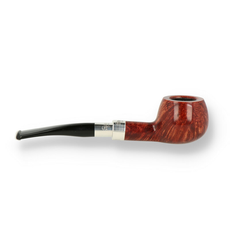 Peterson Walnut 406 Spigot Peterson Spigots are notoriously rare and usually take pride of place in any collection. The Spigot evolved on the front lines as soldiers repaired their pipes with spent cartridges. Peterson evolved this into hallmarked sterling silver band and tapered fitting on the stem of a high grade pipe. The Briar on this pipe has been specially chosen for it's exceptional grain pattern which runs vertically from the heel up the bowl which is then highlighted with the warm walnut finish. 406 is an ingenious mini churchwarden, the small squat pot bowl and slightly curved stem makes this an ideal clencher. It's petit lines make it a great pocket pipe for when you are out and about or for those times when you just need a quick smoke.