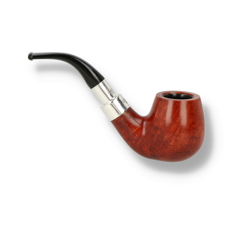 Peterson Walnut 68 Spigot Peterson Spigots are notoriously rare and usually take pride of place in any collection. The Spigot evolved on the front lines as soldiers repaired their pipes with spent cartridges. Peterson evolved this into hallmarked sterling silver band and tapered fitting on the stem of a high grade pipe. The Briar on this pipe has been specially chosen for it's exceptional grain pattern which runs vertically from the heel up the bowl which is then highlighted with the warm walnut finish. The Spigot 68 is a full bent, tapered billiard briar with a relatively large bowl. The extra size comes from a wider bowl but the bore isn't overly large and this doesn't add to the weight much. It has a deep bowl so will suit a short or lengthy intense smoke. A great all rounder with stunning aesthetics. As with all the spigots there is a hall marked sterling silver military mount. This is a tapered fitting meaning the fit will never wear loose and I guess we can say it again, it just looks fantastic!