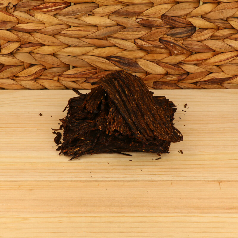 Matured Virginia, Black Cavendish and a bit of Perique.
