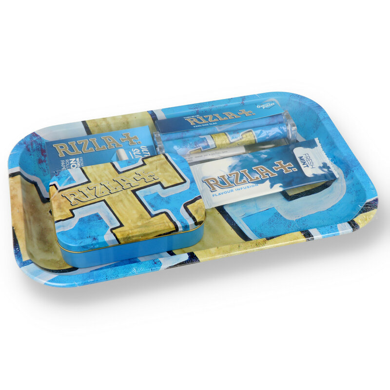 Includes: 1x Rizla Blue King Size Rolling Papers 1x 50g Rizla Tobacco Tin 1x King Size Plastic Rolling Machine 1x Pack of Rizla Extra Slim Filter Sticks 1x Pack of Rizla Fresh Mint Infusion Cards 1x Metal Rolling Tray
