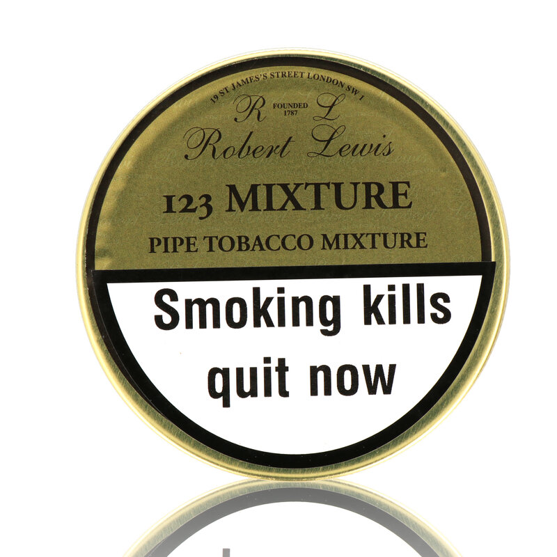 Robert Lewis 123 Mixture The Robert Lewis 123 mixture is primarily blended from a super-fine pure Havana leaf with additions of Black Cavendish, Virginia, Oriental and a discreet pinch of Latakia for unmatched complexity and character, which has been compared to the long lost Sobranie No.10. The 123 burns cool and slow, leaving a light grey ash