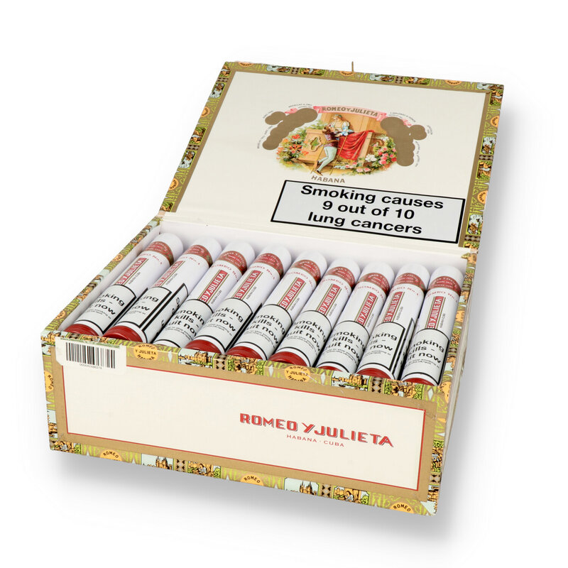Individualy tubed: The Romeo Julieta Tubos range of cigars are individually packaged in a cedar lined Aluminium tube. As well as being decorative the Cedar lined tube also helps preserve your cigar for up to a year without the use of a humidor meaning they are always ready for that special occasion that a cigar of this quality is designed to represent. They also make ideal presents as they do not need to be smoked immediately.