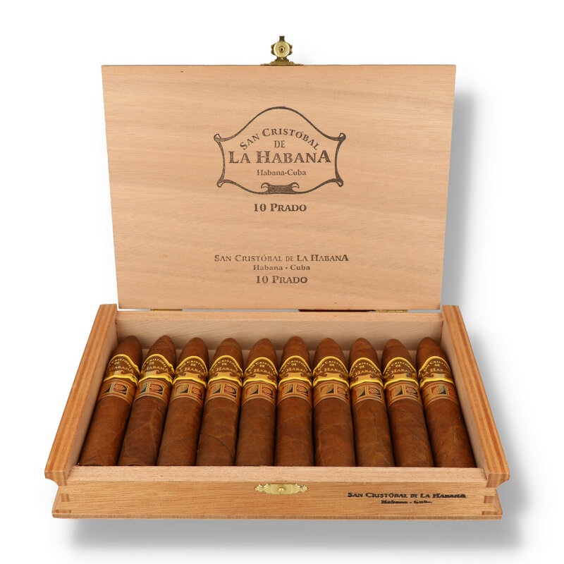 Prado Cigars The San Cristobal Prado is a premium cigar that is highly regarded among cigar enthusiasts for its rich, complex flavor profile and exquisite construction. This cigar is named after the famous boulevard that runs through Havana's historic center, known for its vibrant energy and stunning architecture. The San Cristobal Prado is hand-rolled by expert Cuban cigar rollers, using only the finest tobacco leaves from the Vuelta Abajo region. This region is known for its rich, fertile soil, which produces tobacco with exceptional flavor and aroma. The wrapper is a beautiful, oily, reddish-brown color that is silky smooth to the touch. When lit, the San Cristobal Prado produces a thick, creamy smoke that fills the air with a tantalizing aroma of roasted coffee, cedar, and hints of dark chocolate. As the cigar progresses, the flavors become more pronounced, with notes of earth, leather, and a subtle sweetness that lingers on the palate. The San Cristobal Prado is a medium-bodied cigar that is smooth and well-balanced, making it a great choice for both novice and experienced cigar smokers. The construction is flawless, with a perfect draw that allows the smoke to flow easily through the cigar, ensuring an enjoyable smoking experience from start to finish. Overall, the San Cristobal Prado is a magnificent cigar that embodies the rich history and tradition of Cuban cigar-making. Its exceptional flavor, impeccable construction, and elegant presentation make it a must-try for any cigar aficionado.