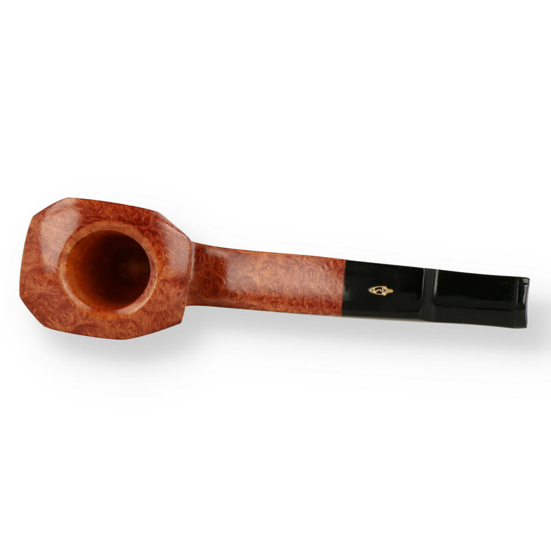 Savinelli Artisan 56 This pipe is just simply stunning! The square shank has a beautiful birds eye grain top and bottom with a flawless flame grain running up the sides. The grain on the bowl is an exceptional straight grain as you would expect from an A graded Savinelli with some beautiful styling from the craftsman. We love the contrast of the perfect flame grain and the birds eye grain on the rim. Topped with a free standing flat bottom for sitting down between puffs, this will be a welcome addition to any serious pipe collectors quiver.