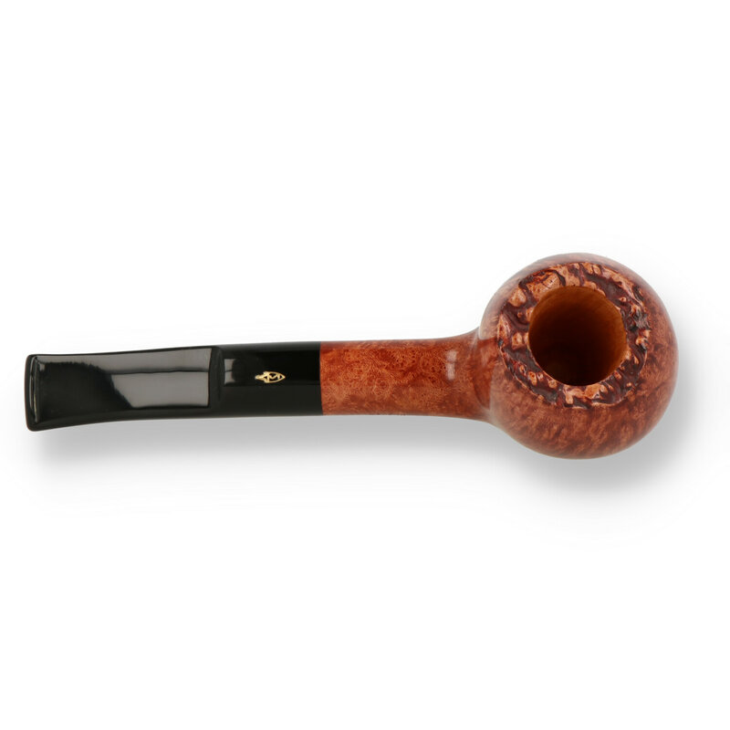 Savinelli Artisan 004 This pipe was on display at the latest UK trade show, The UK Tobacco was the first on the stand and instantly snapped it up. It is just simply stunning! The grain is an almost flawless straight grain as you would expect from a AA graded Savinelli with some beautiful and unique styling from the craftsman. We love the contrast of the smooth base against the delicately sandblasted bowl rim. This will be a welcome addition to any serious pipe collectors quiver.