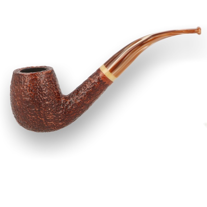 Savinelli Dolomiti Rustic Light Brown 9mm Briar Pipe: The Savinelli Dolomiti Rustic Light Brown collection is a stunning high grade range made using the usual high quality of Briar that we have come to expect from Savinelli and has been a rusticated finish on the bowl. Rustication is hard to get right but Savinelli and their experienced pipe craftsmen are experts in this field with wonderful results. The bowl is stained with a rich deep brown stain with lighter stain on the raised areas. The pipe is finished off with a stunning brown and ivory marbled mouthpiece and ivory coloured ring which compliments the pipe beautifully and is a true testament to italian style.