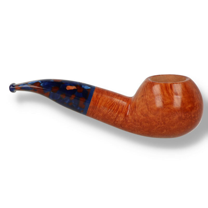 Savinelli Fantasia Briar Pipes: The Savinelli Fantasia are a strikingly beautiful pipe design from the Italian masters. Available in Natural smooth and Rusticated finishes with a special acrylic stem with a "craquelé"" texture mixing brown, blue and white. The 320 EX Author is one of Savinelli’s most popular and iconic designs, it takes a more Italian neo-classical approach, placing a heavy emphasis on the visual weight of the bowl itself.