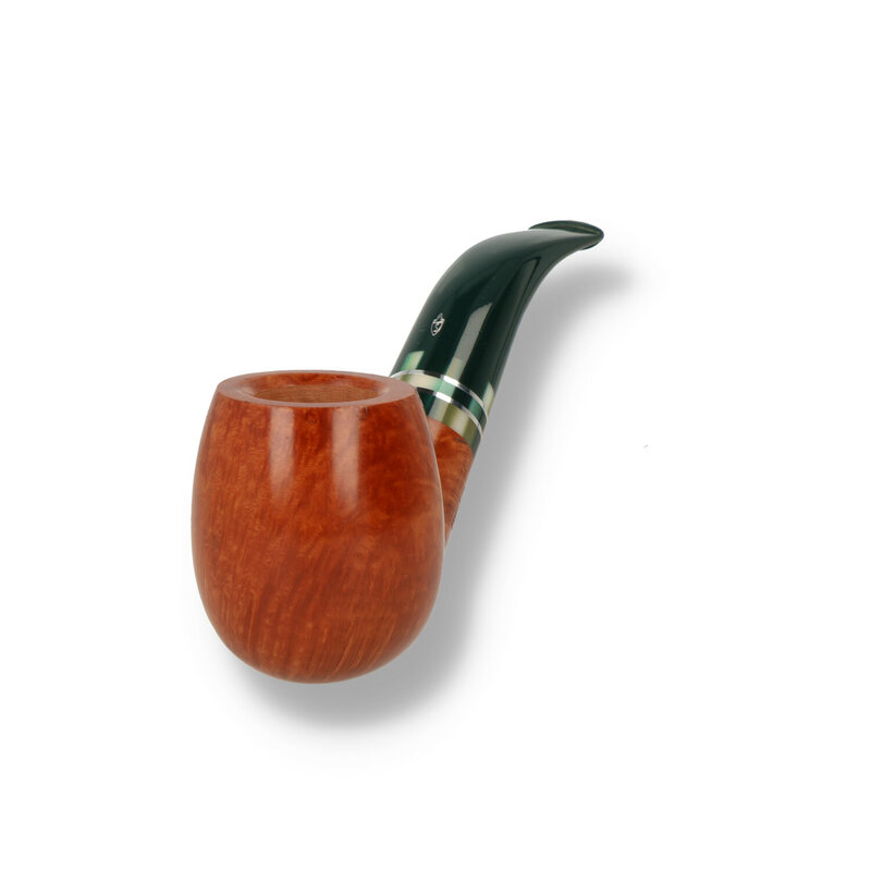 Savinelli Foresta Briar Pipes: There's nothing like a walk in the forest to cleanse the soul and heal the mind, why not upgrade your next forest trip with the Savinelli Foresta, Inspired by the rich fertile "forestas" of Italy these beautiful pipes are defined by a rich, green colour palette finished in a natural stain or a walnut rustication. Each unique acrylic stem reveals a rich, conifer green hue that leads beautifully into a trio of acrylic accents displaying a range of green hues from olive and pine to emerald and sage each separated by twin nickel rings. The The 616 is a generously constructed classic bent billiard with a large bore and a deep chamber. The thick walls of the bowl and shank give a nice tactile feel in the hand with the added benefit of giving a lovely dry cool smoke.