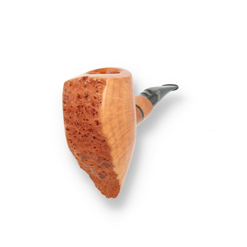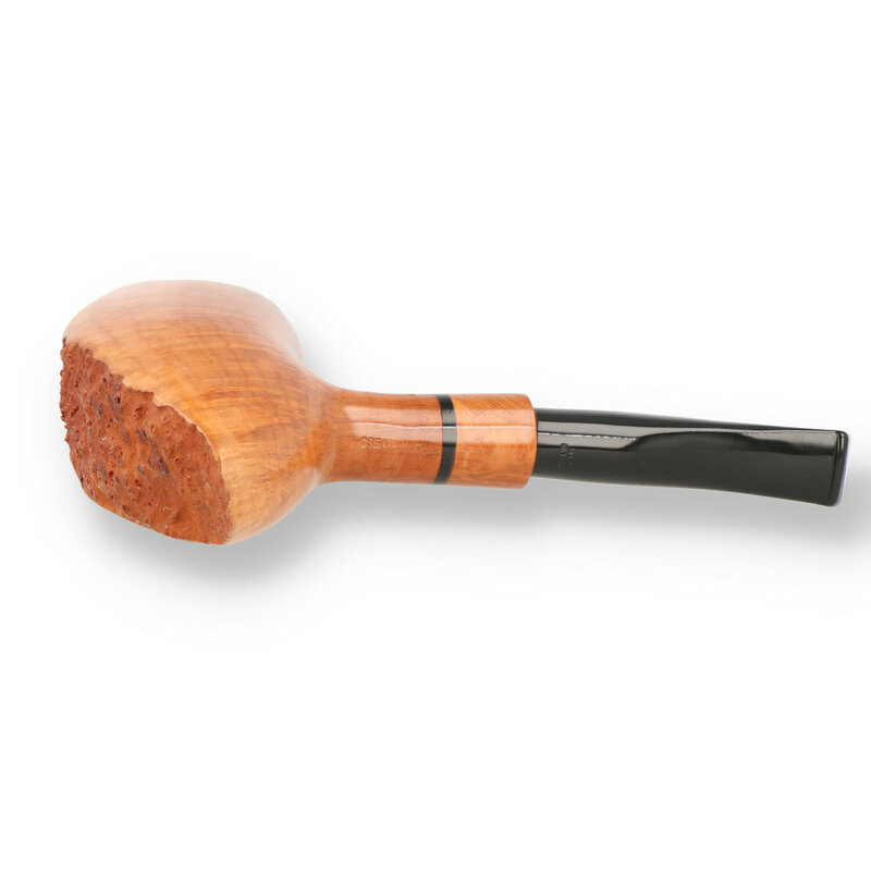 Savinelli Autograph Creativity Briar Pipe The creativity series are pipes of outstanding quality, slightly different than the rest of the Autograph range in their aesthetic peculiarities. Each pipe is personally designed by Giancarlo Savinelli and represent the highest quality products of the one of the worlds best pipe manufacturers. This jaw-dropping pickaxe has the most incredible grain that flares out from the base of the shank, out towards the raw, sandblasted birds eye that runs along the front of the bowl. This pipe has to be seen to be believed. Truly a work of art that wouldn't look out of place in a gallery.