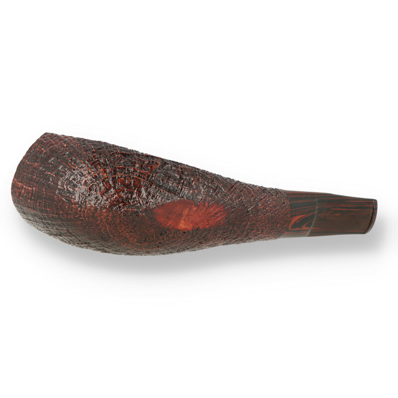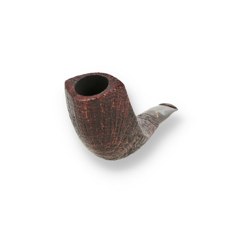 Savinelli Autograph Sandblast Briar Pipe The grain flows beautifully and flairs in perfect symmetry with the shape of the bowl and the shank for another truly stunning pipe. (we say that quite a lot with Savinelli autographs) The bowl and stem flow beautifully into one another which resembles a Viking drinking horn. The stunning grain has been sandblasted to perfection and given a rich red stain.
