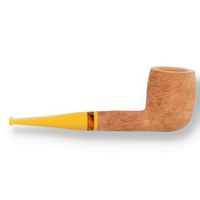 Savinelli Ghibli Briar Pipes: The Savinelli Ghibli is another striking pipe from the Italian master craftsmen with unique styling. Meaning "a Hot dry wind" these pipes come in striking colours that really stand out from the crowd. This 111 comes in a raw natural colour with a tortoiseshell band and yellow acrylic mouthpiece.