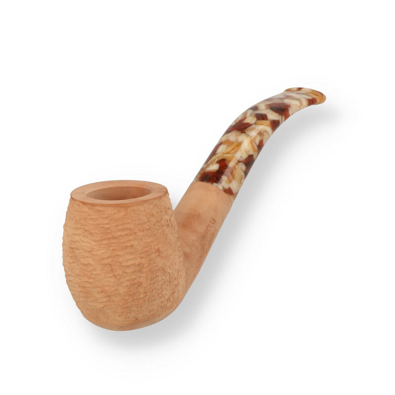 Savinelli Granola Briar Pipe: Part of their Natural series, the Granola features a composite acrylic stem made from warm browns, yellows and whites that is reminiscent of the mixed cereal. The bowls are left unstained and given a smooth finish running along the shank and along the bottom of the bowl before being given the Savinelli rustication process around the bowl. The Granola pipes have a natural pastoral feel to them and are just stunning in their simplicity. Sometimes less is more and that is evident with these wonderful cleanly designed pipes.