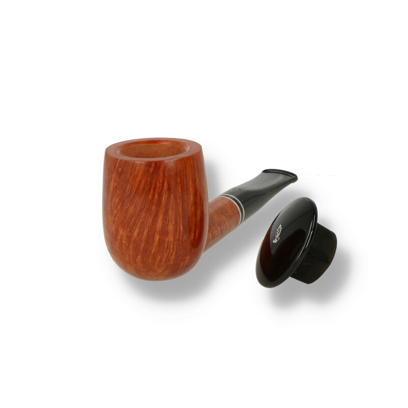 Savinelli Monsieur Smooth Pipes: The Monsieur Smooth Briar Pipe is a masterpiece of Italian craftsmanship. Handcrafted with precision and attention to detail, this pipe showcases the renowned Savinelli brand's dedication to excellence. It boasts a flawless smooth finish that enhances the natural grain of the briar wood. The smooth, polished surface is a testament to the skilled artisans who have meticulously shaped and sanded the pipe, ensuring a comfortable grip and a stunning visual appeal. The Monsieur is fitted with a useful and elegant black pipe cap made from acrylic which allows you to pack your pipe and pop it in your pocket without losing your tobacco. With its flawless finish, ergonomic design, and exceptional quality, it is a pipe that combines artistry and functionality in a way that only Savinelli can achieve.