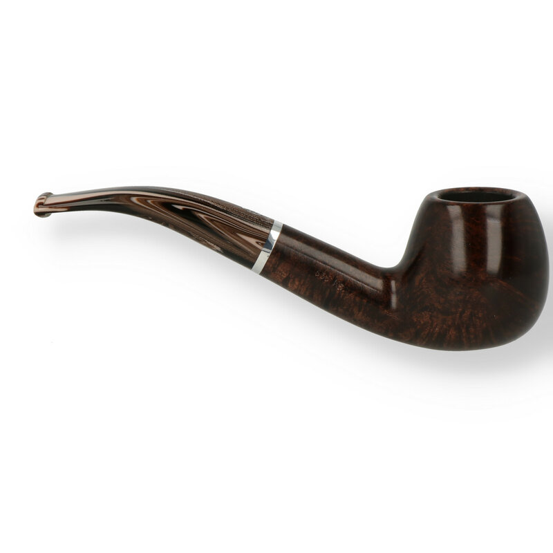 Savinelli Morellina 6mm Briar Pipe: The Savinelli Morellina series takes it's name from the endearment of "moro", a traditional Italian noun meaning "Dark Brown", With a dark brown bowl in the smooth finish and a black bowl in the rusticated finish, the Morellina is distinguished by the beautiful brown Cumberland style stem. The 636 is a classic bent Apple which is appreciated by it's curves and easy to hold design with a spacious chamber and classic and popular styling.