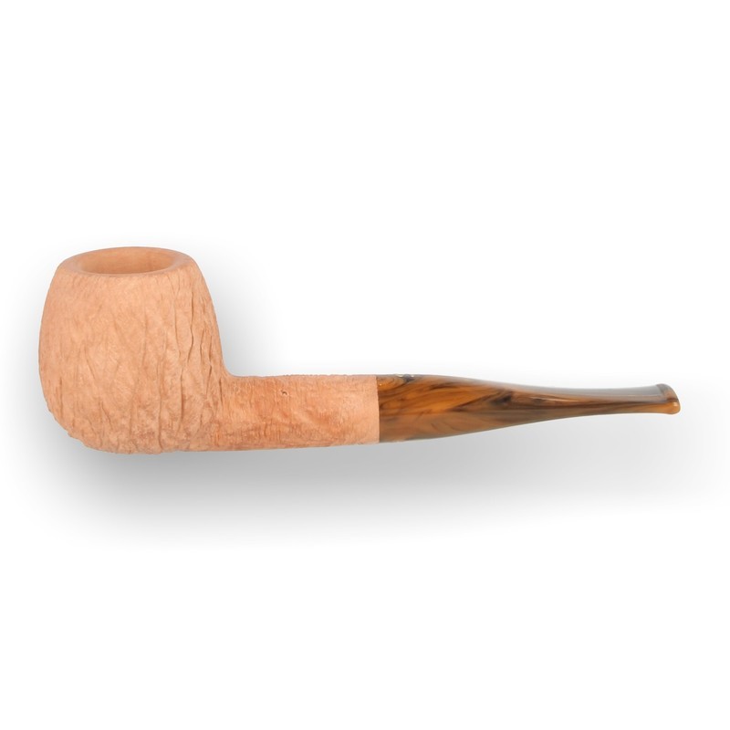 Savinelli Noce 9mm Briar Pipe: The Savinelli Noce 207 collection has been given a "raw" rusticated finish, or rather a finish that has no stain. Pipes with no finish are not very common, because without the covering there is no place for any imperfection in the briar to hide. Another positive with the Noce collection is that each pipe comes with a choice of 2 acrylic stems, a jet black and a wood effect stem.