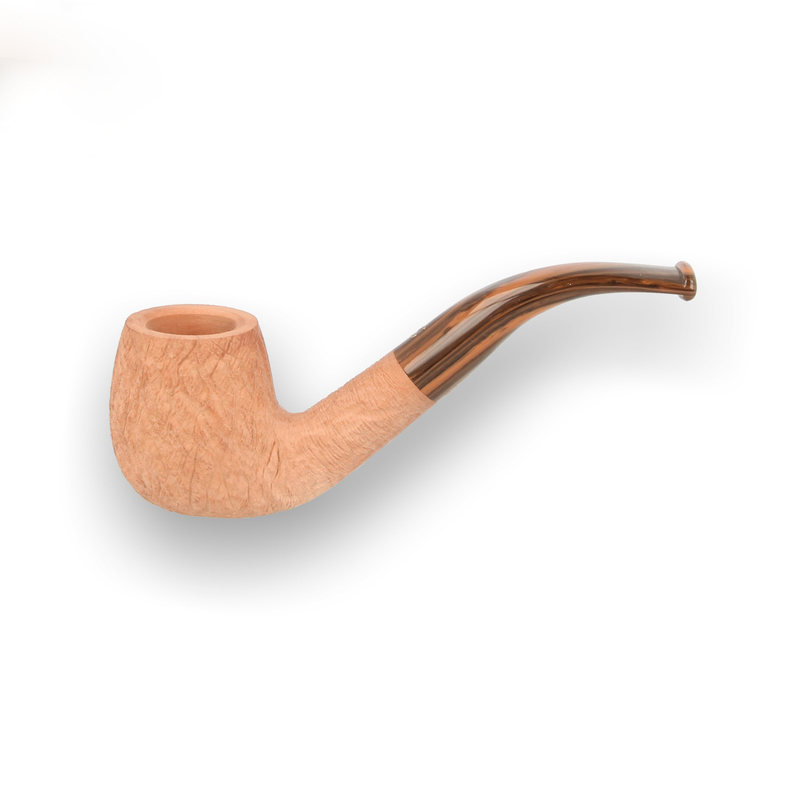 Savinelli Noce 9mm Briar Pipe: The Savinelli Noce 207 collection has been given a "raw" rusticated finish, or rather a finish that has no stain. Pipes with no finish are not very common, because without the covering there is no place for any imperfection in the briar to hide. Another positive with the Noce collection is that each pipe comes with a choice of 2 acrylic stems, a jet black and a wood effect stem.