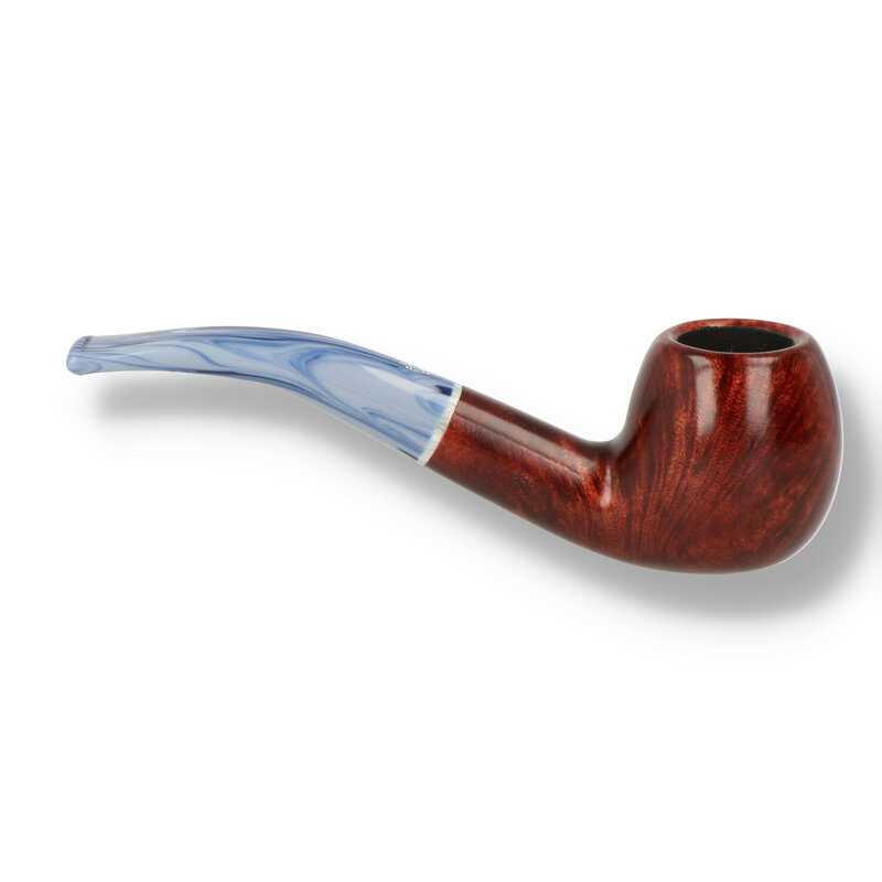 Savinelli Oceano Briar Pipes: The Savinelli Oceano are a stunning range of pipes released in 2018. Italy has over 4500 miles of some of the most beautiful coastline in the world, from the Adriatic Sea to the northeast, the Ionian Sea to the southeast, the Tyrrhenian Sea to the southwest, and the Ligurian Sea to the northwest. It's easy to see where they took their inspiration for the Oceano line. Available in both a smooth Burgundy and Savinelli's classic Rusticated finish. Each pipe has a subtle white band that transitions into an eye catching blue and white marbled effect stem which looks like swirling sea foam. The 626 is an elegant bent apple with soft lines and aesthetically pleasing proportions.