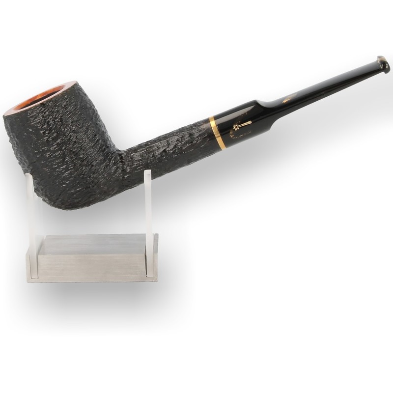 Savinelli Oscar Tiger Rustic Briar Pipes: The Savinelli Oscar Tiger Rustic is another striking pipe from the Italian master craftsmen with unique styling. A quality briar pipe which has a deep black carved finish with a smooth dark brown polished rim. The pipe is finished with a deep black stem with streams of transparent amber colours going through it before finishing with a brass ring. The marbled transparent stem is something new to the pipe world and we think it is absolutely stunning.