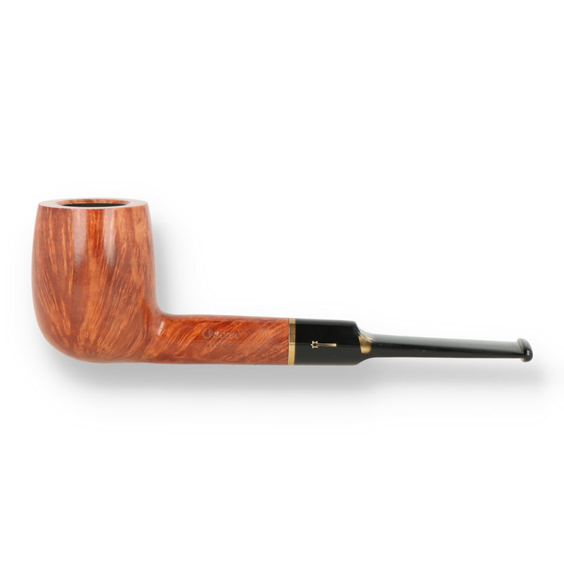 Savinelli Oscar Tiger Smooth Briar Pipes: The Savinelli Oscar Tiger Rustic is another striking pipe from the Italian master craftsmen with unique styling. A quality briar pipe which has a rich high gloss polished bowl. The pipe is finished with a deep black stem with streams of transparent amber colours going through it before finishing with a brass ring. The marbled transparent stem is something new to the pipe world and we think it is absolutely stunning.
