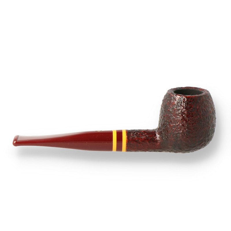 Savinelli Regimental 207 The Savinelli Tortuga 207 is a classic straight Apple 6mm smoking pipe with a stunning dark brown sandblast finish on the bowl and chestnut and gold, tapered, mouthpiece. The Apple shape is arguably the most comfortable bowl shape for most palms and the briar wall stays thickest where it is needed the most, which helps keep the pipe cool along with the smoke.