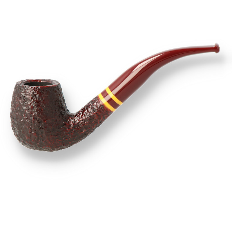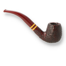 Savinelli Regimental 602 The 602 is one of the most instantly recognisable pipe shapes, this classic bent billiard has been expertly sandblasted before being given a rich deep brown stain. The Chestnut and gold coloured band is finished off with a elegant tapered burgundy fishtail stem.