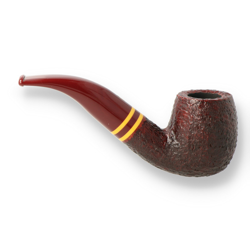 Savinelli Regimental 616 The 616 is a generously constructed classic bent billiard with a large bore and a deep chamber. The thick walls of the bowl and shank give a nice tactile feel in the hand,the Rusticated finish gives the added benefit of giving a lovely dry cool smoke. The Chestnut and gold coloured band is finished off with a chunky tapered burgundy fishtail stem.
