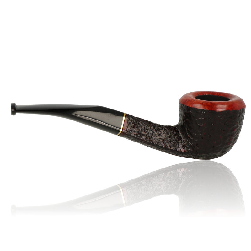 Savinelli Roma Rustic Briar Pipes: The Savinelli Roma is a beautiful pipe range made by the Italian style masters. Savinelli have their own unique style, which makes them stand out from any other brand. The Roma Lucite is a Rusticated bowl finished in a rich dark red stain which is left lighter on the raised areas. The rim is left smooth and matches the lighter red of the raised areas of the rustication which adds to the style without being too flamboyant. The pipe is finished with a black stem and Brass band.